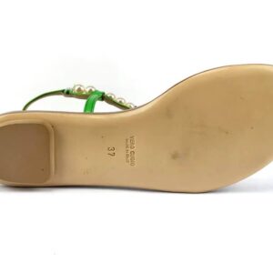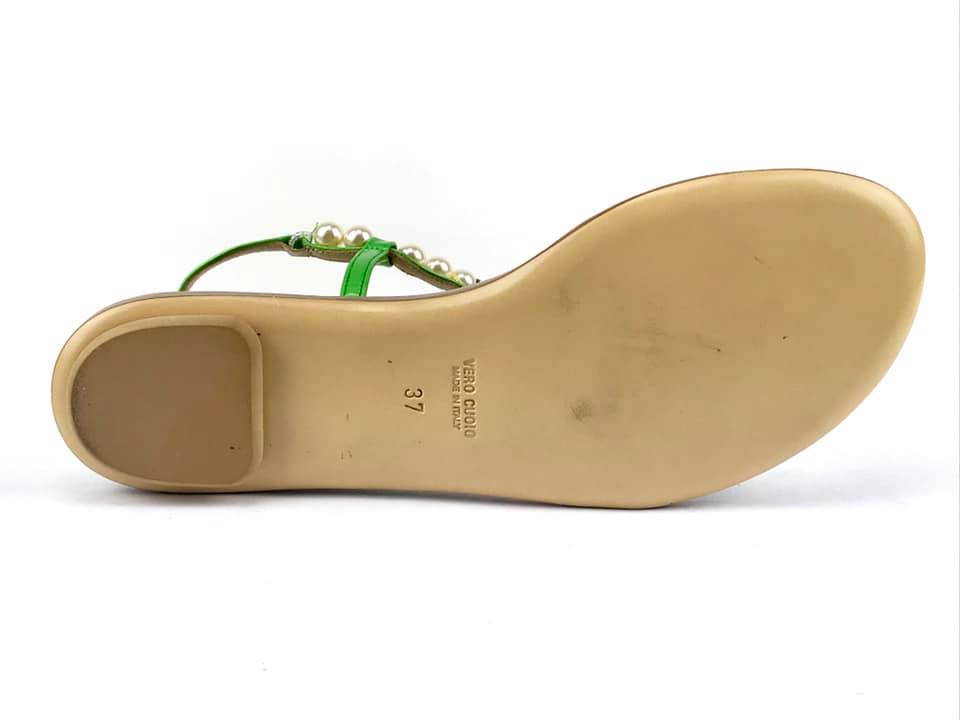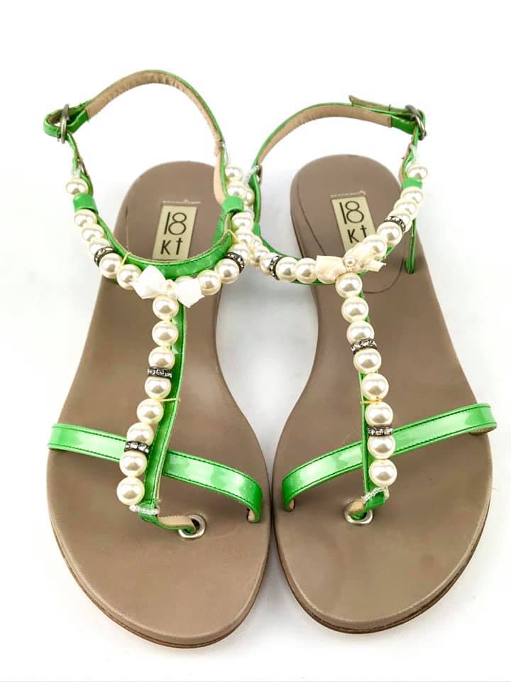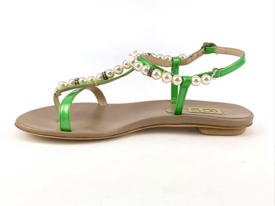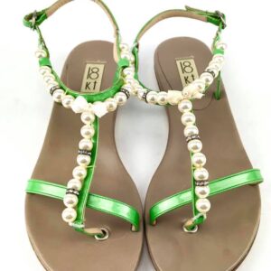 ELEGANTISSIMO INFRADITO REALIZZATO IN PELLE E PERLE CON INSERTI IN SWAROSKY, SUOLA IN CUOIO, PLANTARE IN PELLE