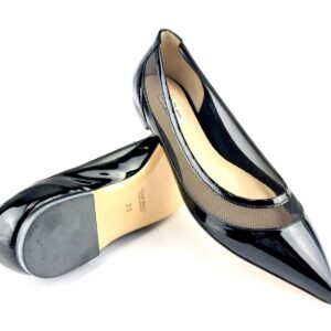 18 KARATI scarpa vernice perla nera decoro rete ,