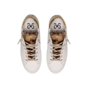 2 STAR sneakers donna bianca e oro pelliccia ,