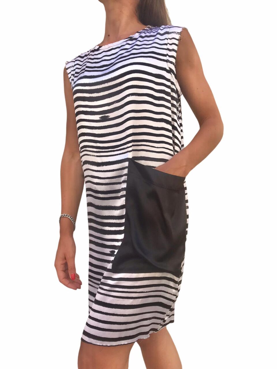 abitino freschissimo realizzato in pura seta 100% , smanicato , vestibilità over , smanicato , tasca in seta applicata