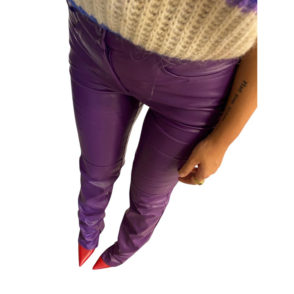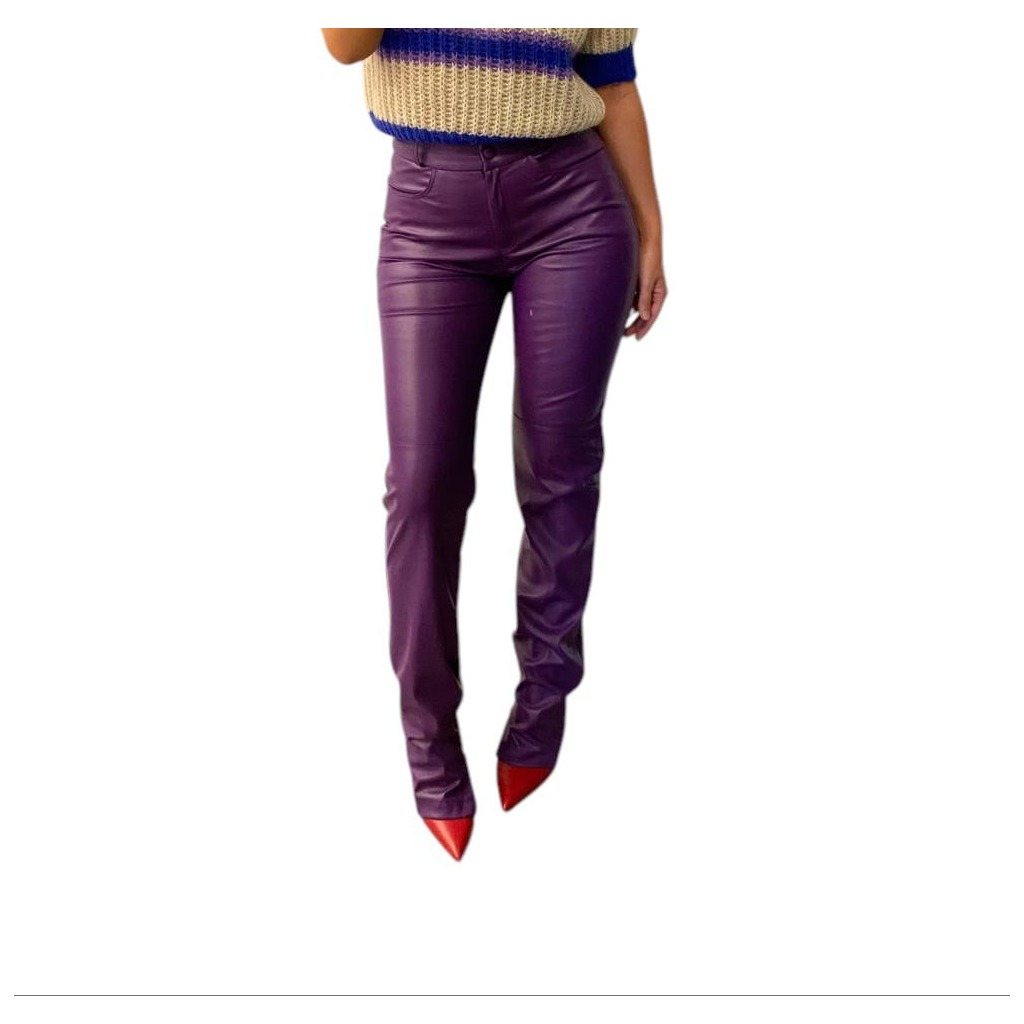 ACTUALEE pantalone in ecopelle viola ,