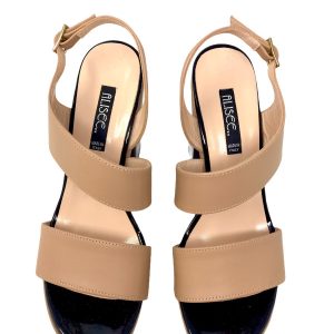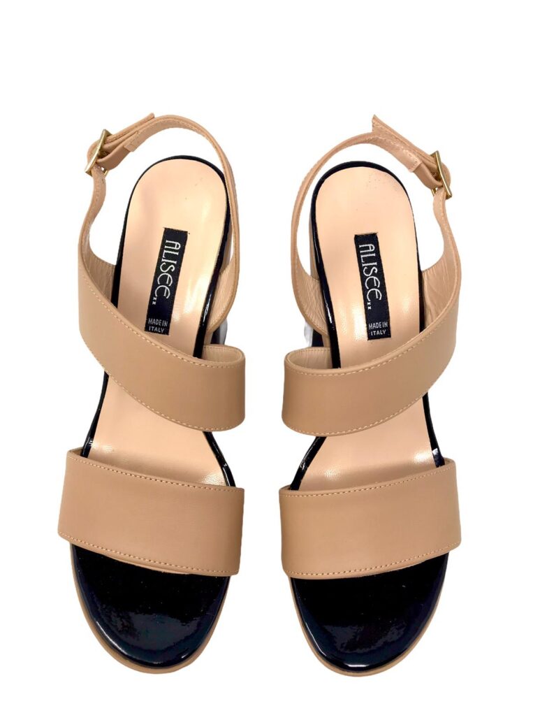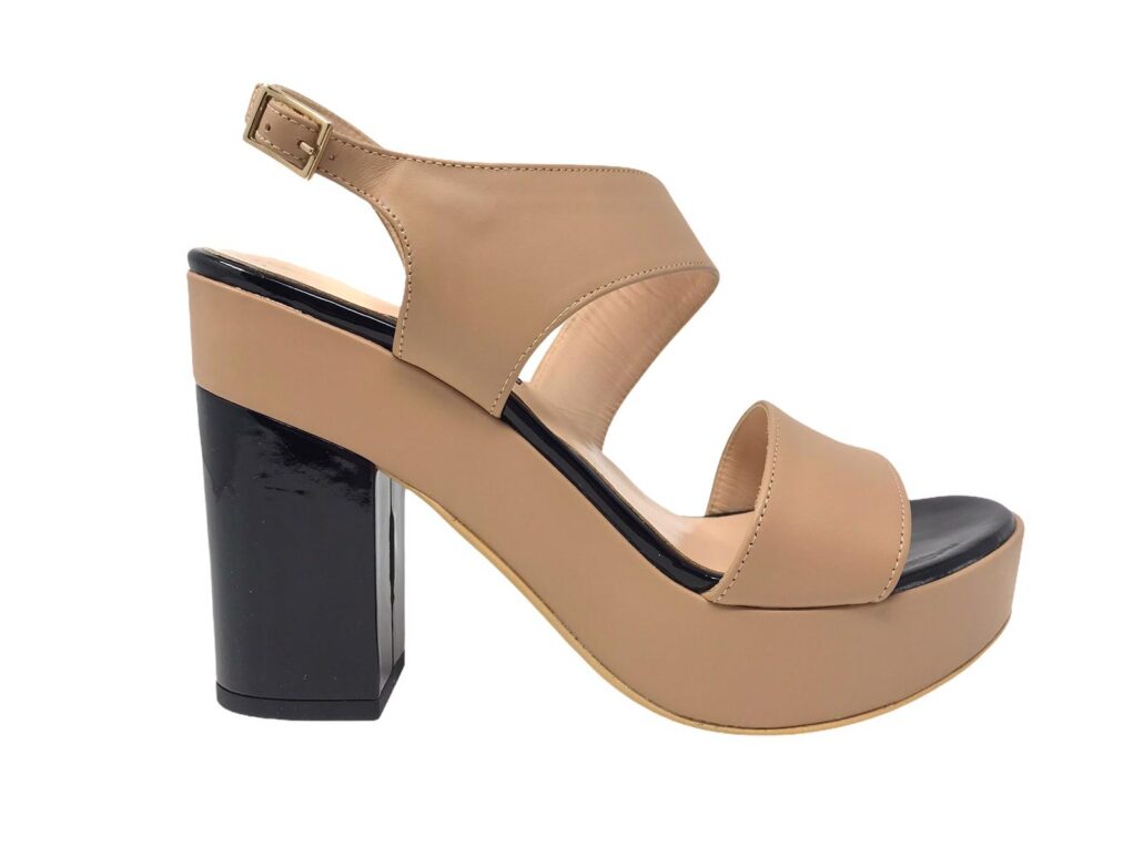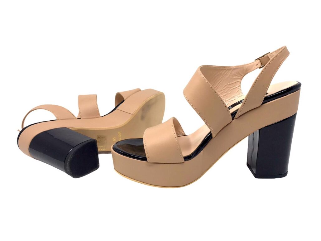 scarpa in pelle bicolore , tacco 11,5 , plateau 3 cm ,suola antiscivolo , plantare in morbida pelle