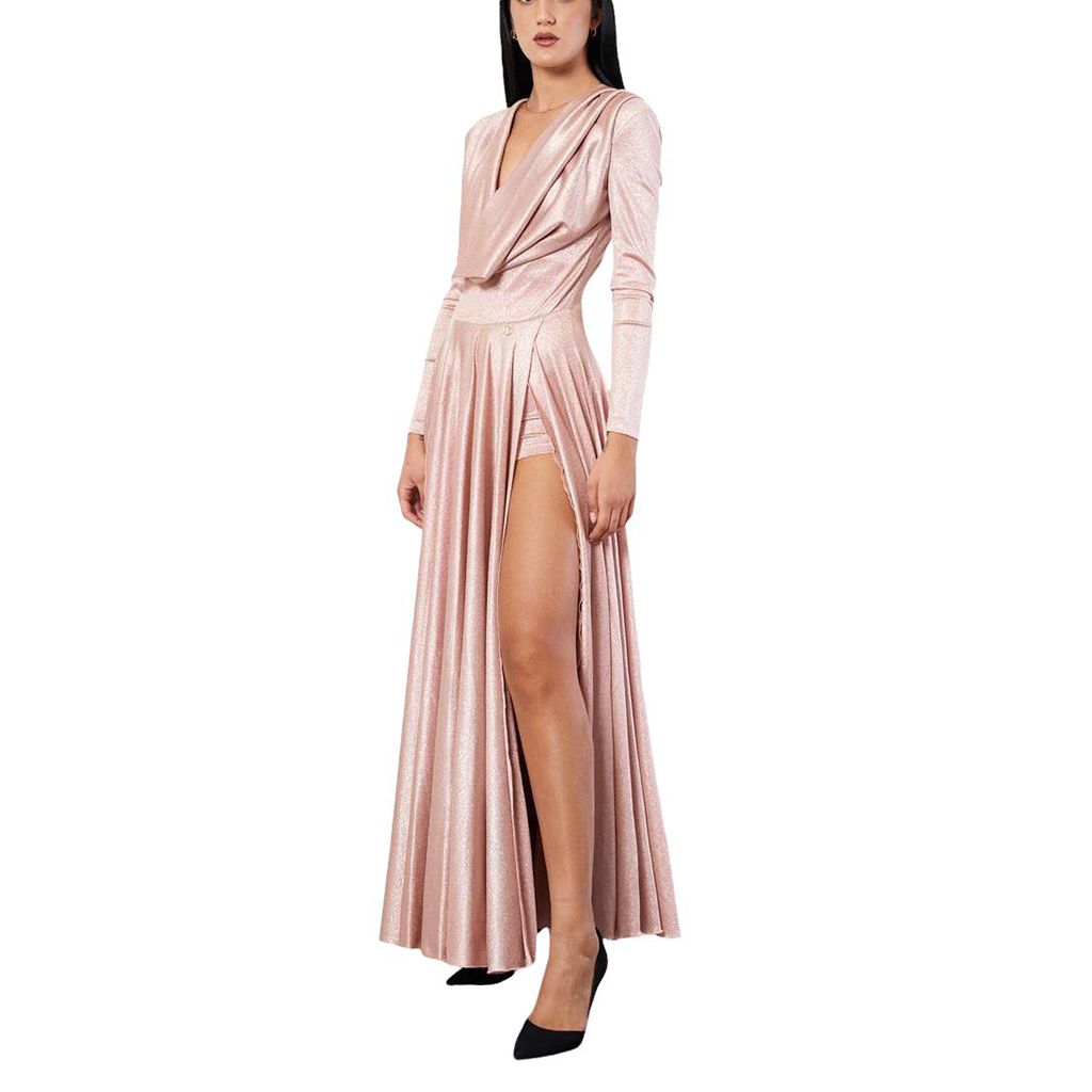 abito lungo con drappeggi