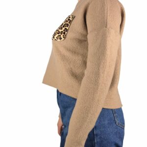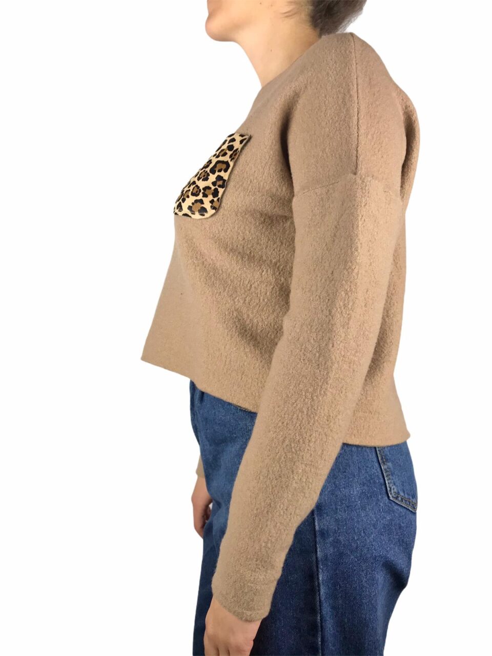 maglia in lana 100% alysi , taglio comodo , taschino in cavallino ecologico