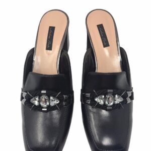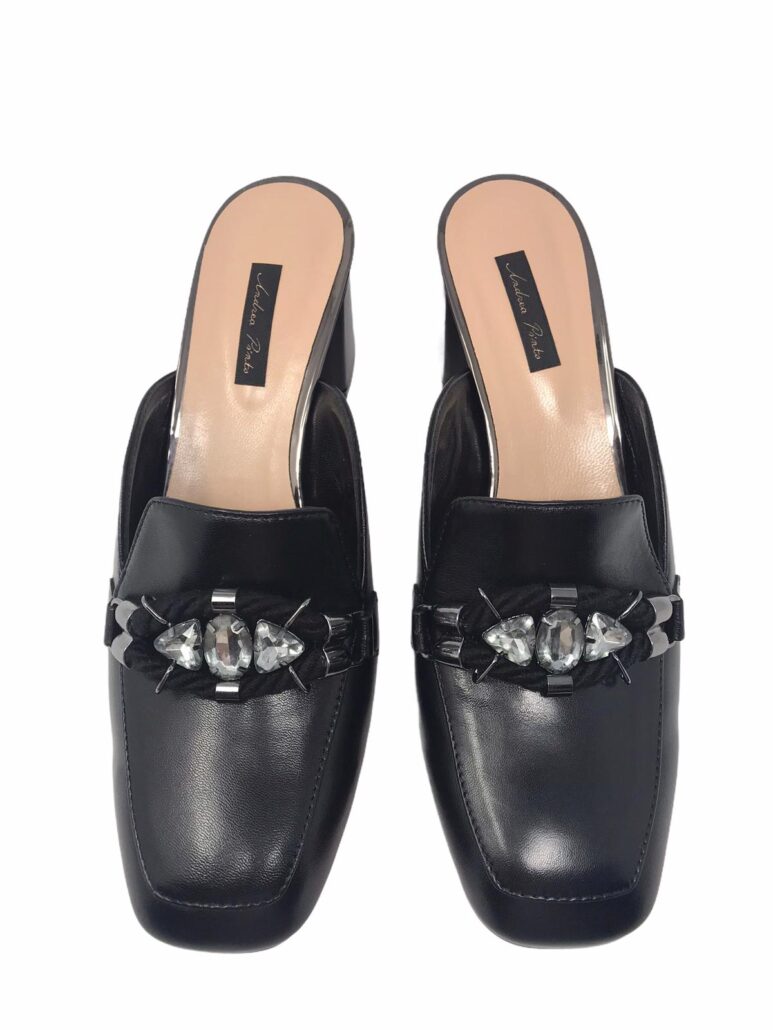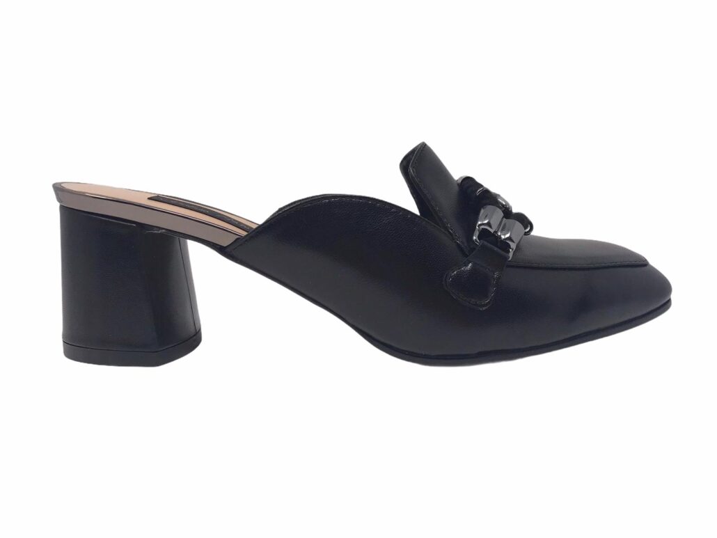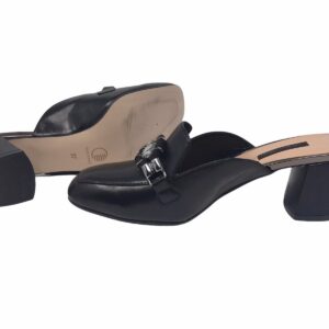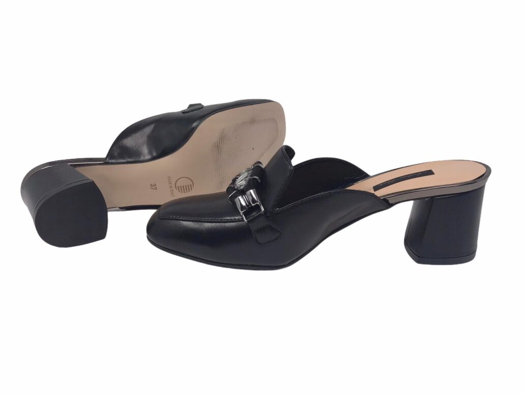 ciabatta donna , realizzata in vera pelle 100 % , tacco 60 mm , plantare anatomico , punta arrotondata , suola con lavorazione antiscivolo