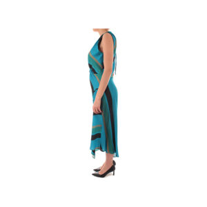 Ampia scollatura sul retro con fiocco da annodare e zip laterale a scomparsa.