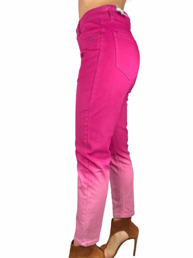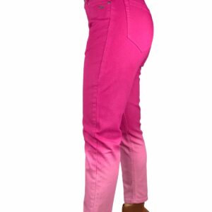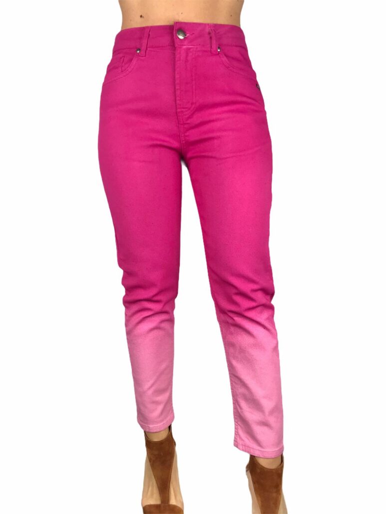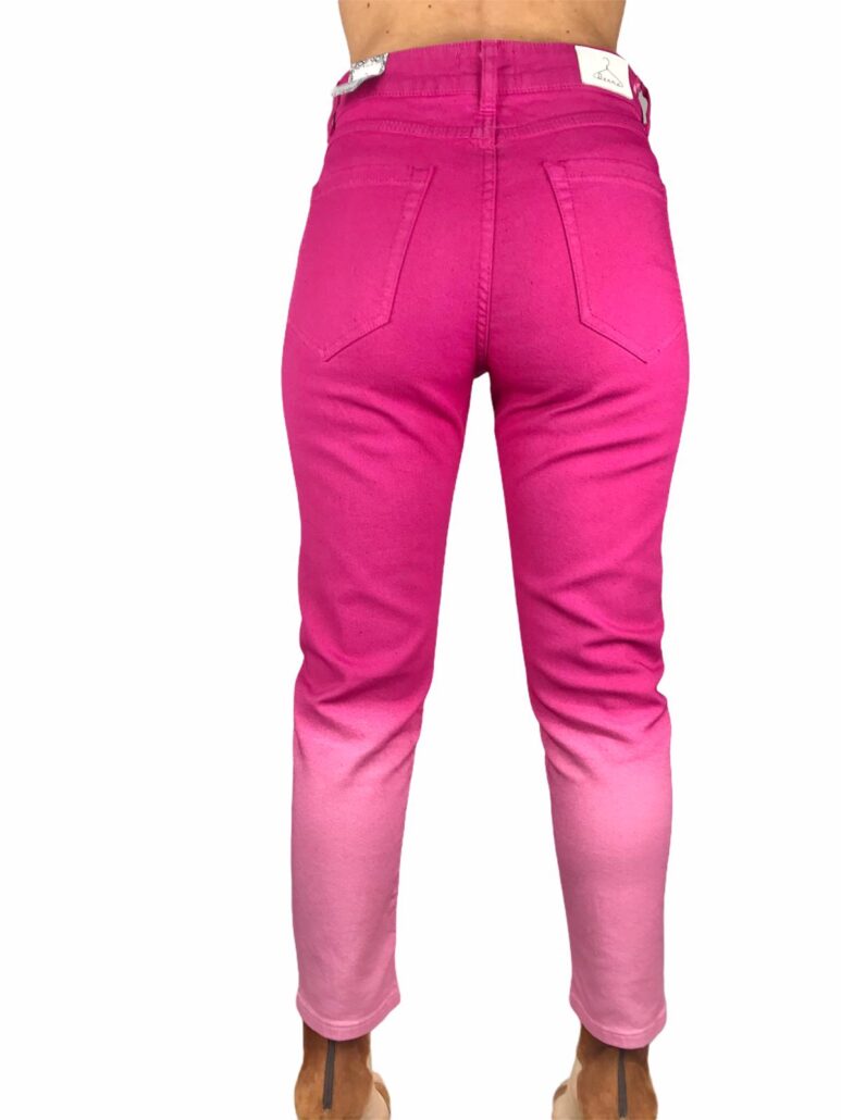 jeans fuxia con sfumature di colori ,fit asciutto ,tela in cotone elasticizzato