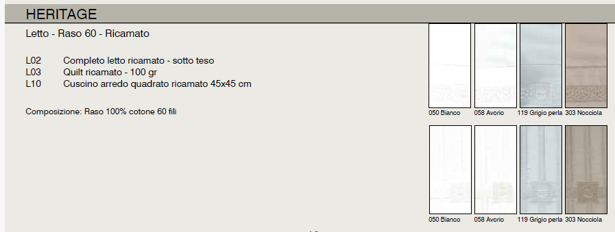 Composizione: Raso 100% cotone 60 fili