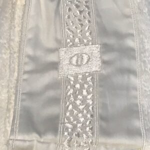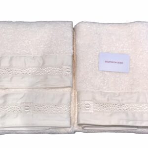 Splendido accappatoio senza cappuccio con collo a scialle in pura spugna idrofila ad alto assorbimento da 380 gr al mq., con pregevoli bordi in raso di cotone ricamato applicati, contenuto in una elegante scatola, ottima idea per un regalo importante. Disponibile il completo spugna 5 pezzi analogo per un completo bagno lussuoso. Borbonese, un grande Brand Italiano