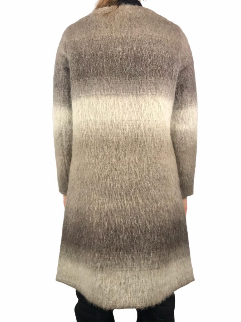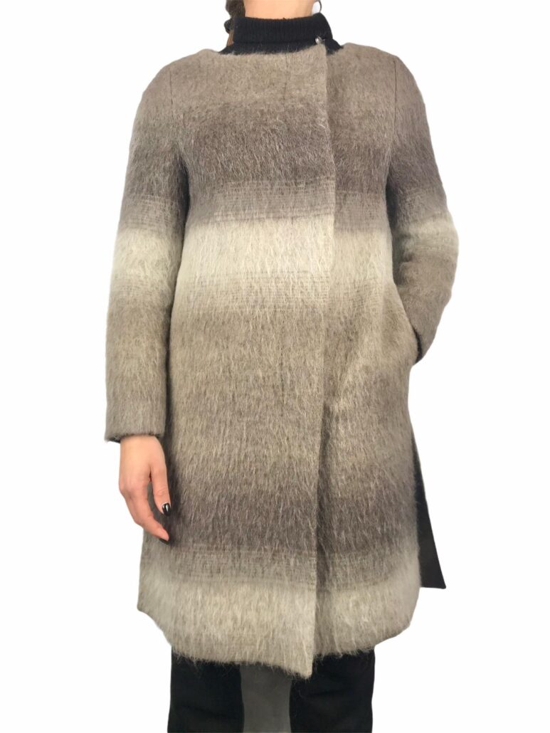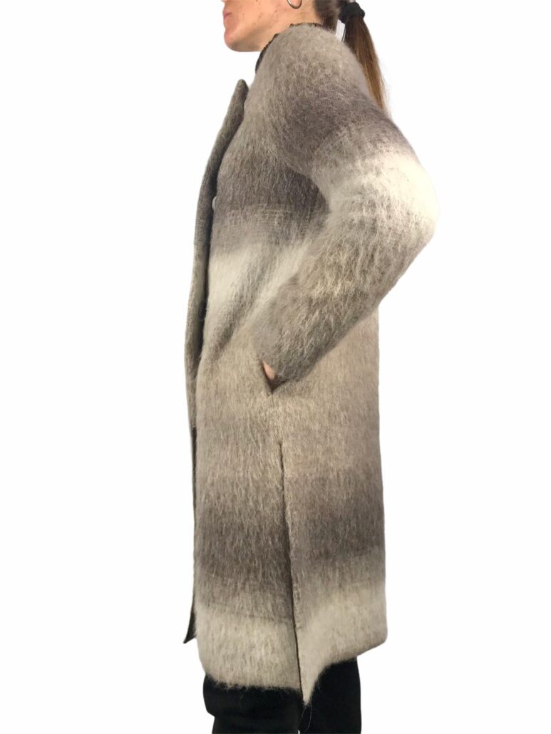 cappotto donna collo largo, realizzato in pregiati filati lana mohair ,taglio leggermente svasato, fantasia sfumata dai colori ambrati