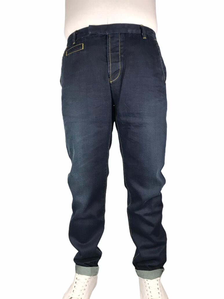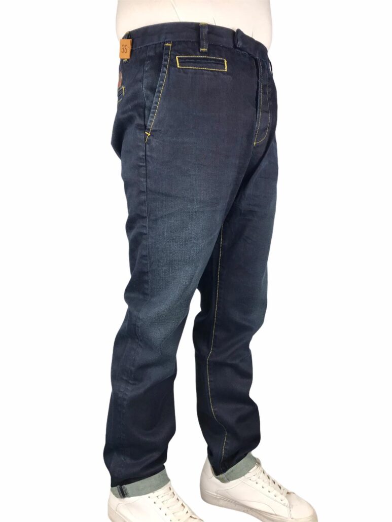 tela in cotone 100% jeans lavaggio scuro, regular fit, tasche a filo