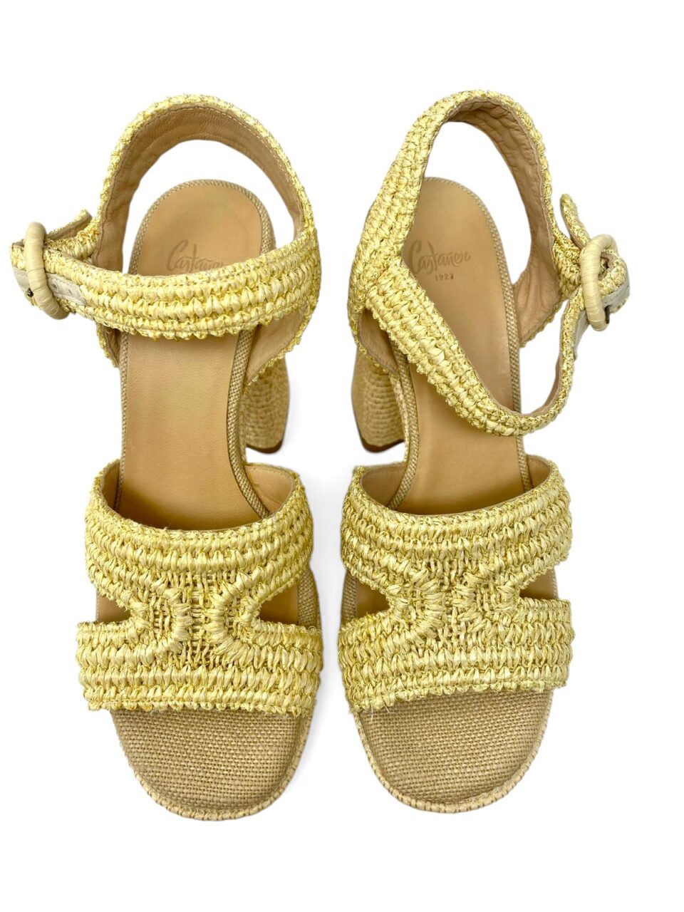 CASTANÉR sandalo in rafia e pelle natural,