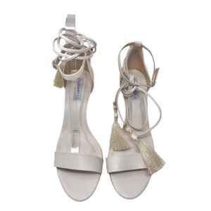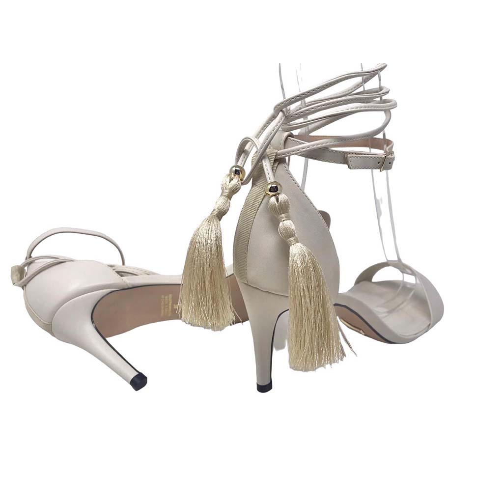 sandalo in pelle con fascia alla caviglia regolabile e filo in pelle con frange (utilizzabile insieme o singolarmente ),