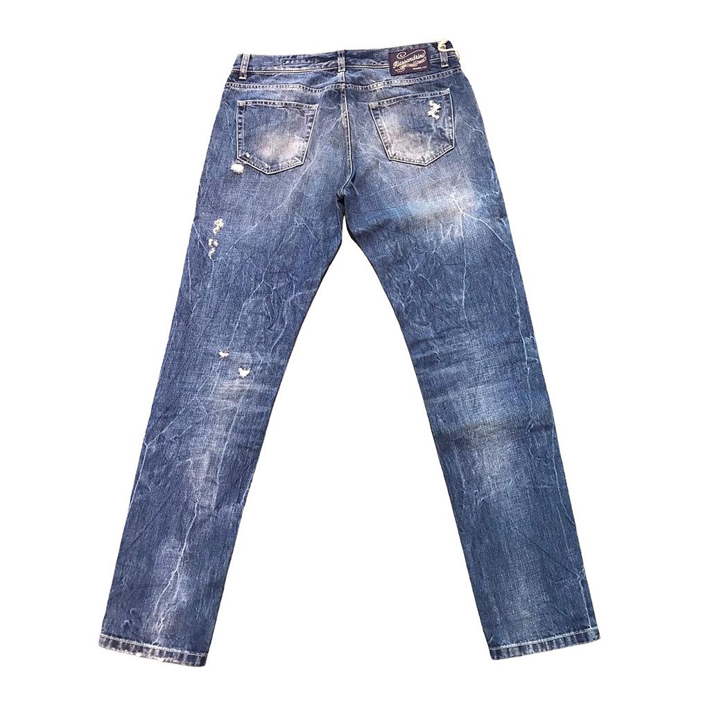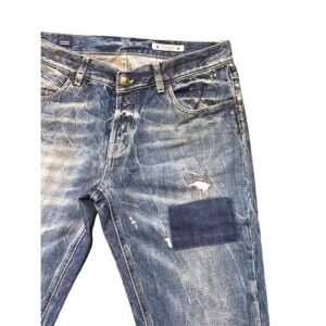 jeans uomo con lavorazioni artigianali a strappi , applicazioni e lavaggi