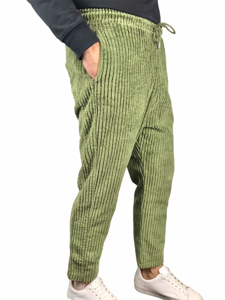 pantalone realizzato a costine di velluto cotonato , morbido e caldo dal fit giovane e comodo