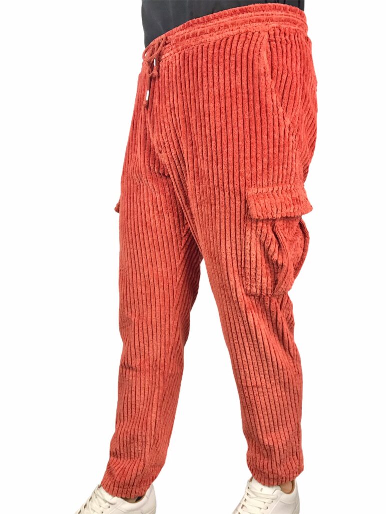 pantalone realizzato a costine di velluto cotonato , morbido e caldo dal fit giovane e comodo