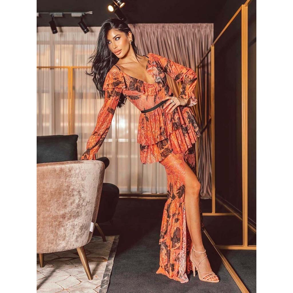 DRAMÉE abito lungo in pizzo floreale