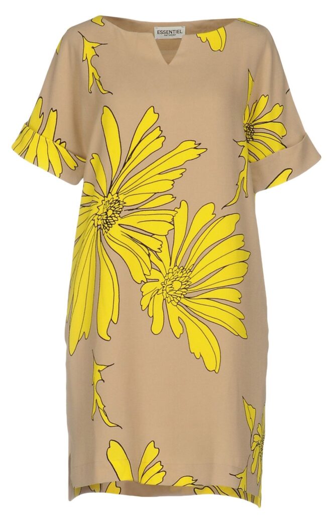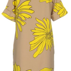 Abito essentiel cammello chiaro e fiore giallo brillante vestibilità morbida,
