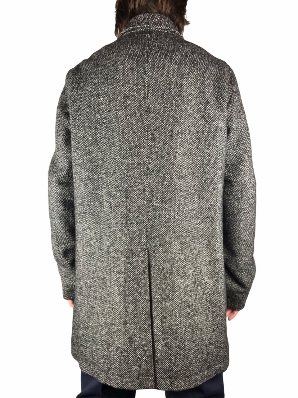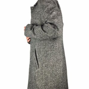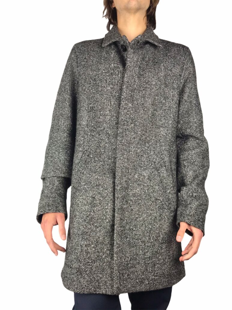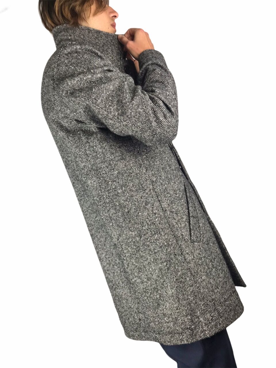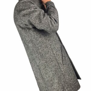 elegante ,cappotto uomo realizzato 70% lana 30% pl ,grigio bouclè ,fit regolare