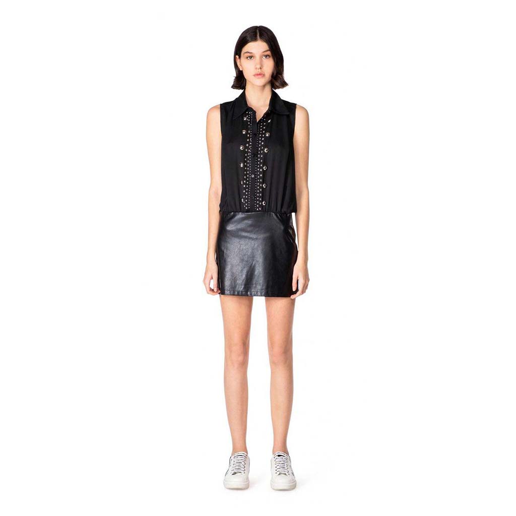 GAELLE PARIS abito smanicato con ecopelle e borchie
