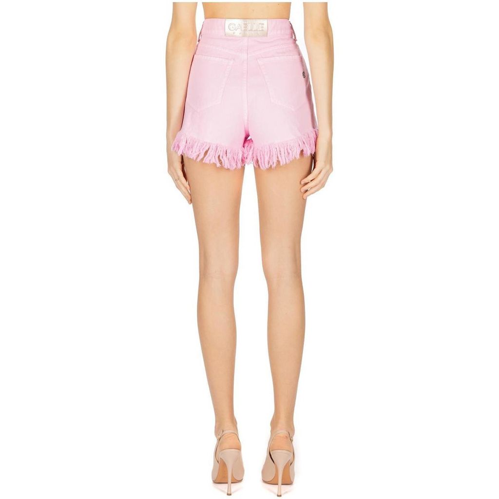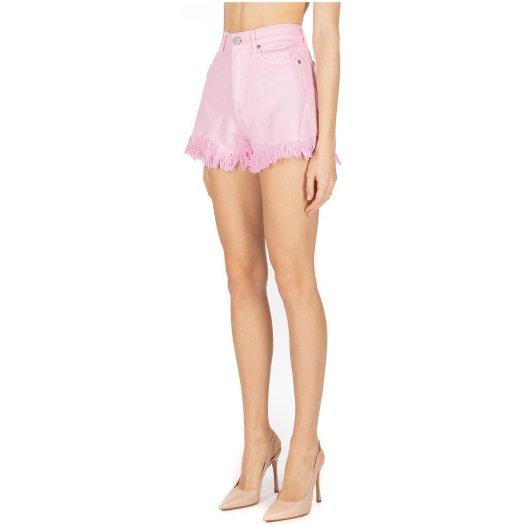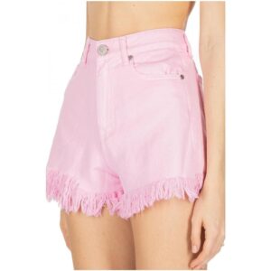 GAELLE PARIS short in denim rosa con frange