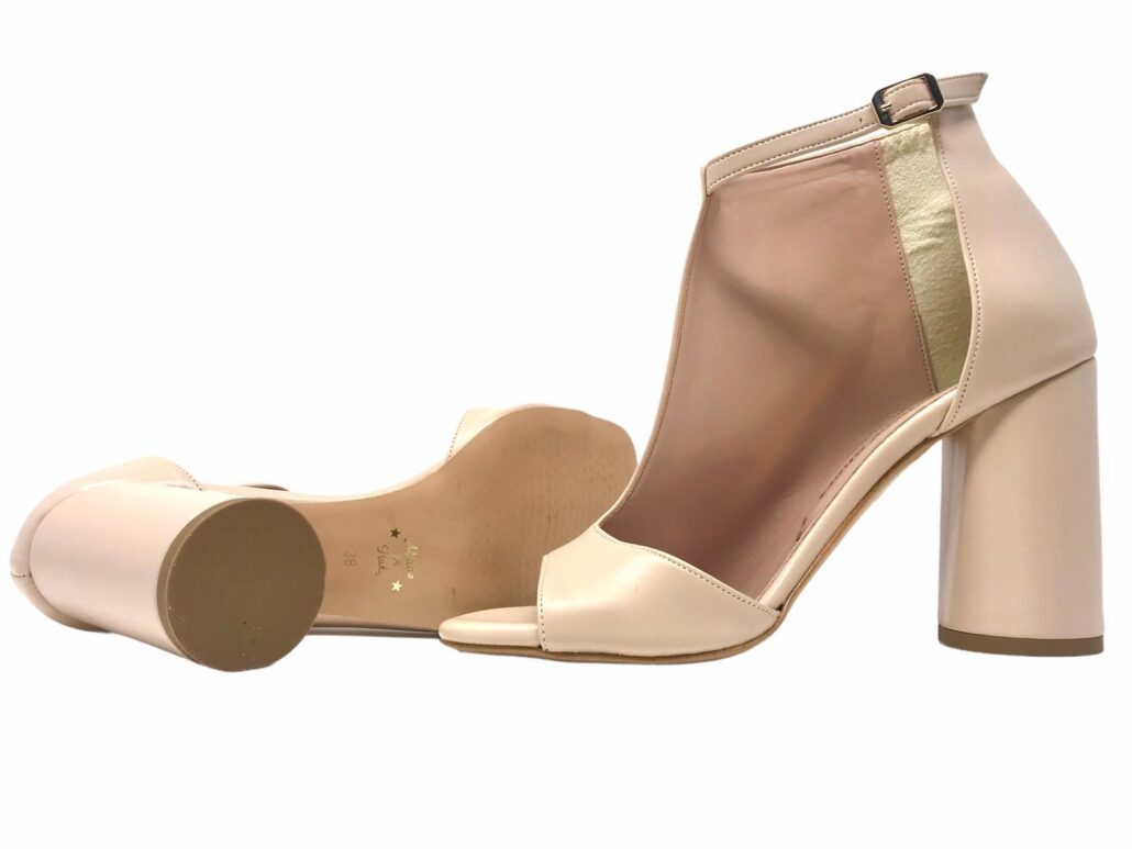 tomaia ecopelle , suola in resina con lavorazioni antiscivolo , plantare anatomico in pelle , tacco torondo 9,5 cm