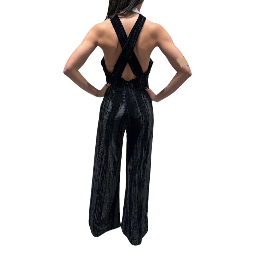 HAVEONE tuta in velluto con colletto bianco,