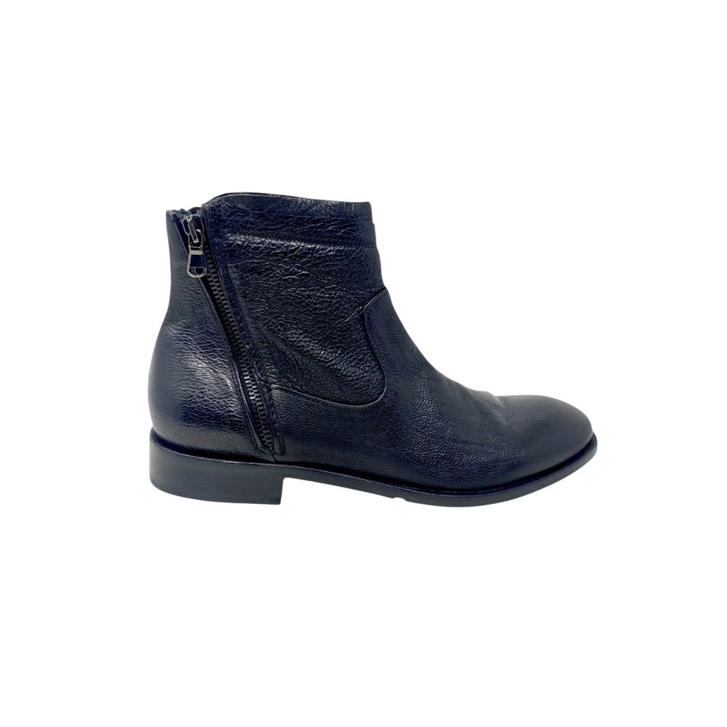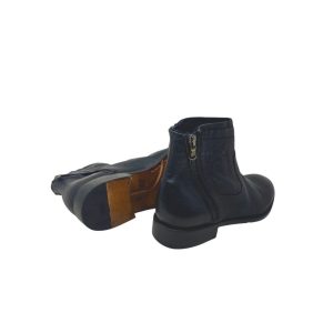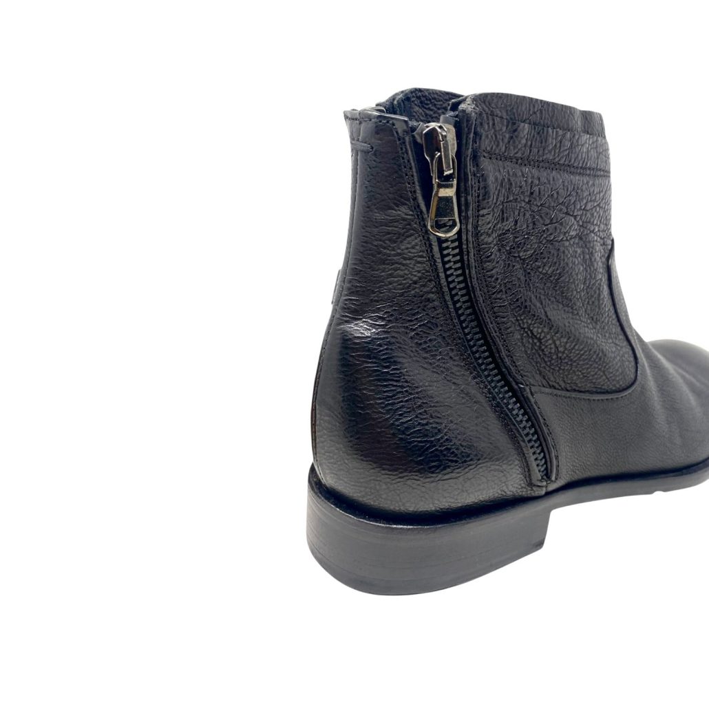 cerniera laterale , suola in cuoio con applicazione in silicone logato antiscivolo ,