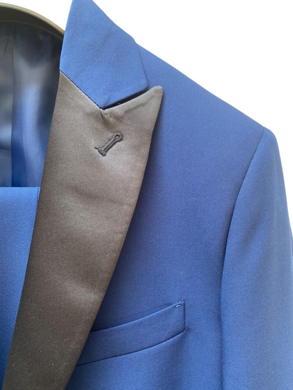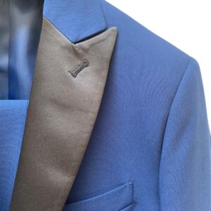 la giacca con revers in raso e il pantalone dal fit asciutto utilizzabile ber le cerimonie o le occasioni piu formali,