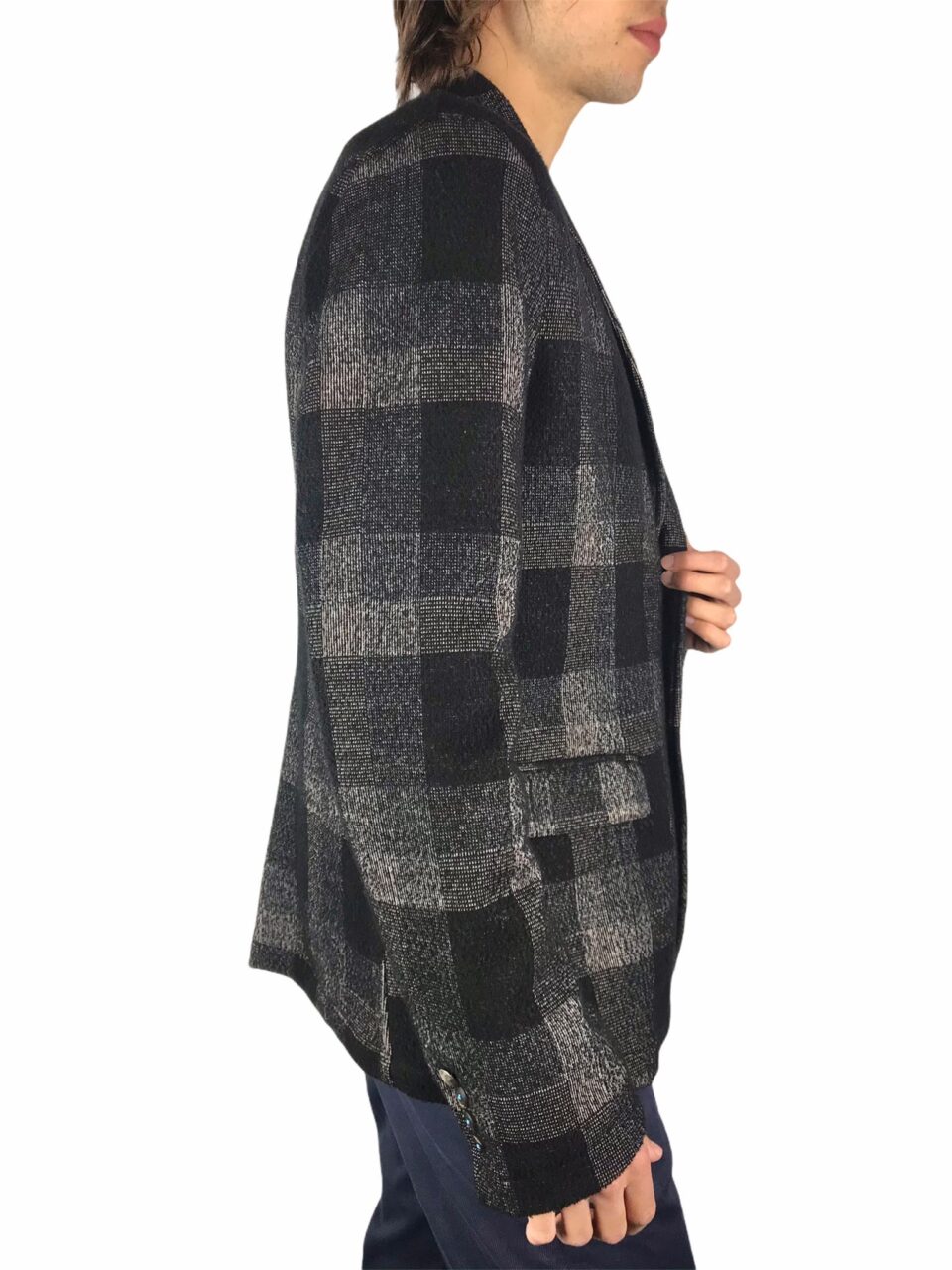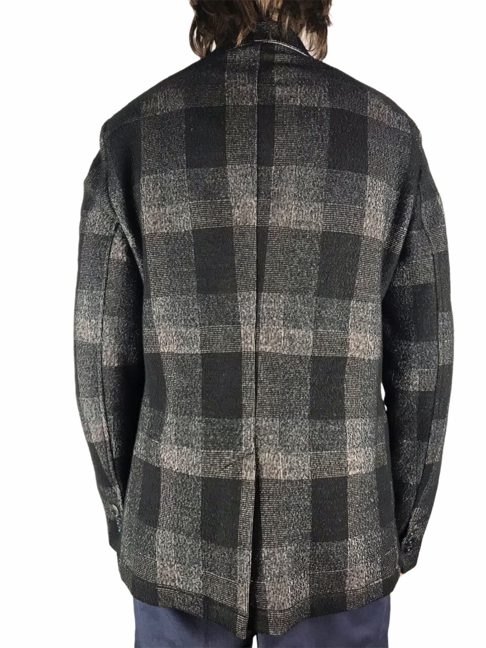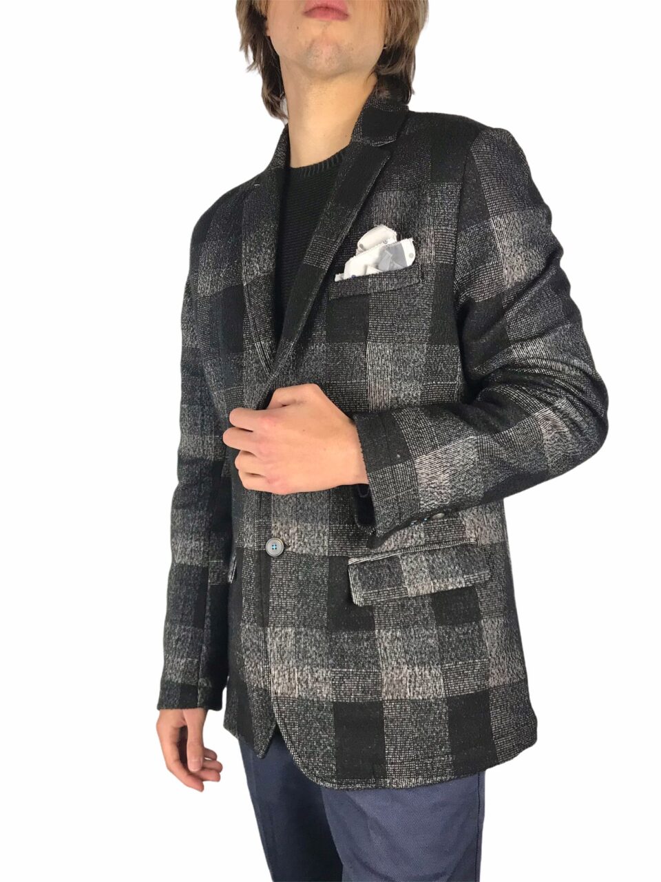 giacca uomo a quadroni ,grigio nero e sfumature ,tessuto e fantasie a microrilievo
