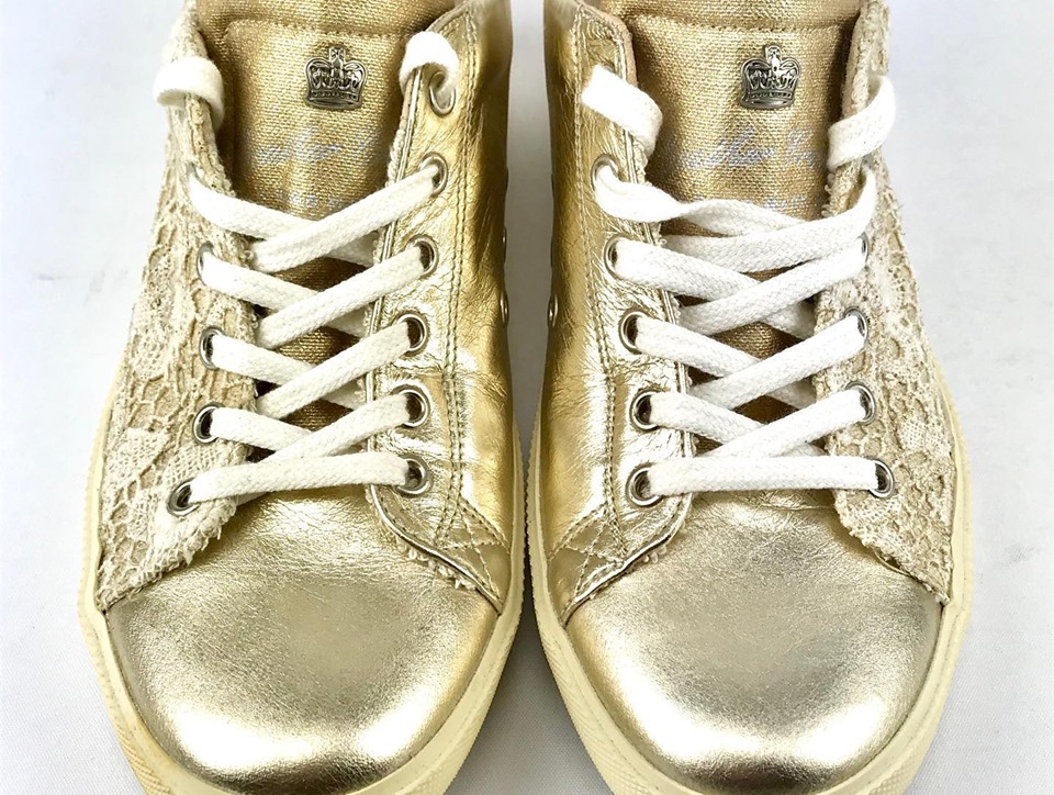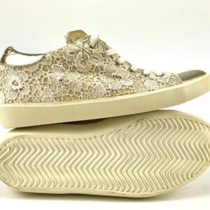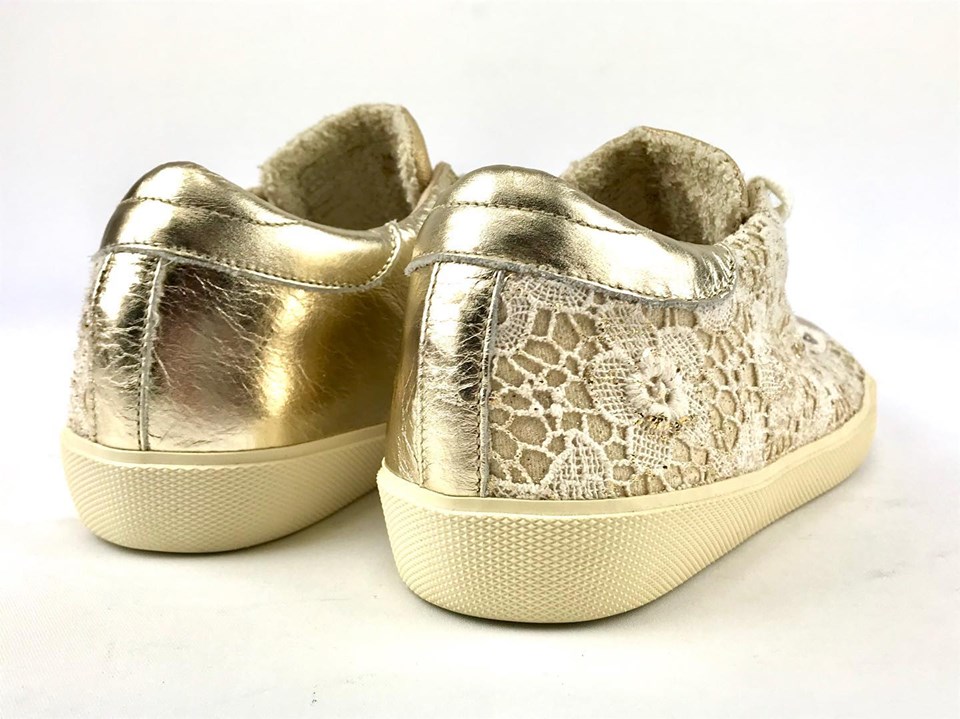 LEATHERCROWN REALIZZATA IN PELLE E TELA RIVESTITE IN PIZZO SAN GALLO DORATO