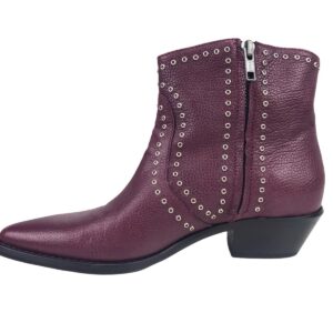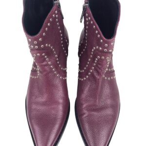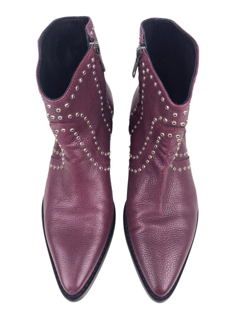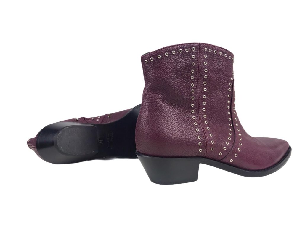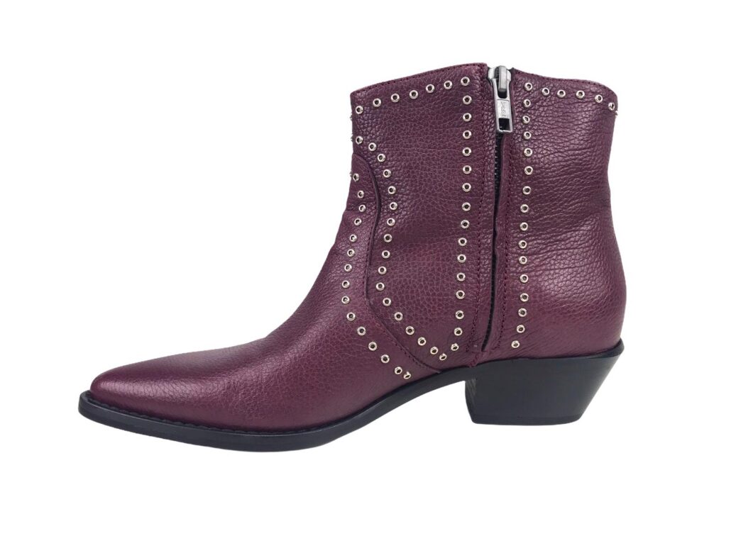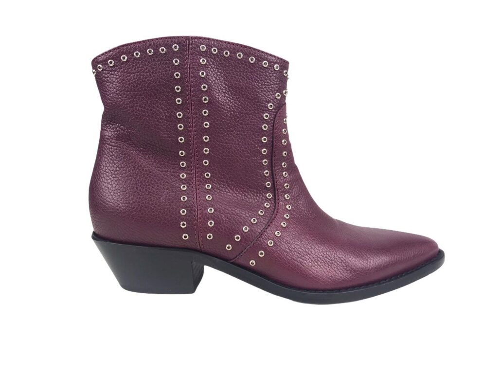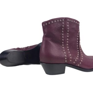 scarpa texano donna,borchiato acciaio,punta affusolata,tacco 4,5 cm color prugna,vera pelle