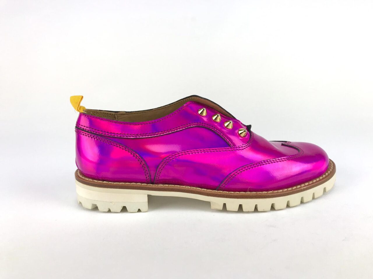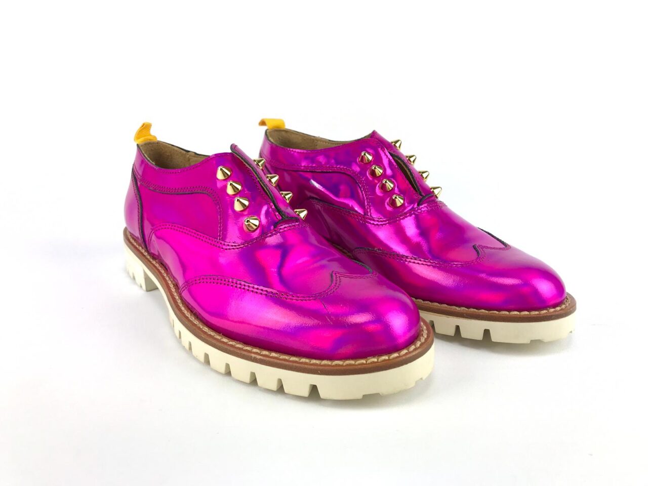(le vernici specchiate hanno la particolarità che quando ci sono abrasioni o graffi fanno emergere lo strato sottostante rendendo ancora più singolare la scarpa )