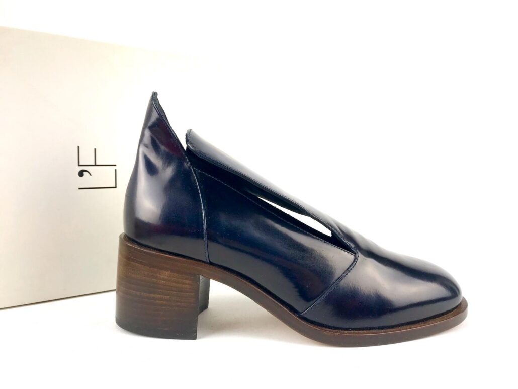 L’F SHOES blue plus tac shoe, woman shoe with heel, dark blue, real leather upper, leather sole, 6 cm heel, an elegant and particular shoe, easy to combine with the most unique looks