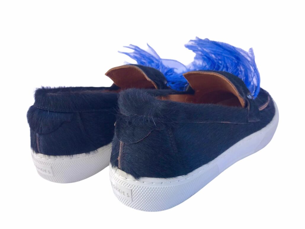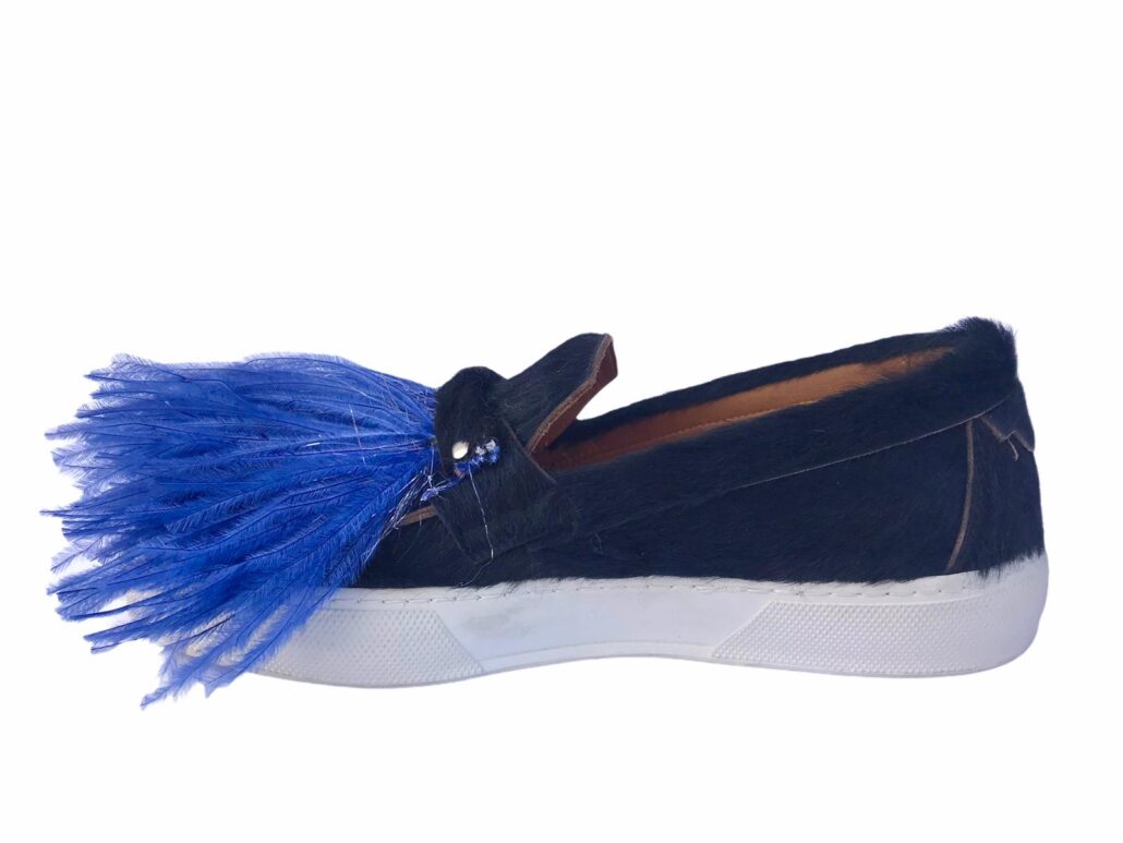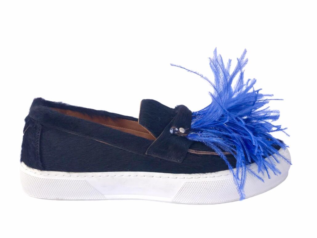 plantare anatomico in pelle ,piume ecologiche di struzzo in tinta distaccabili con clip,