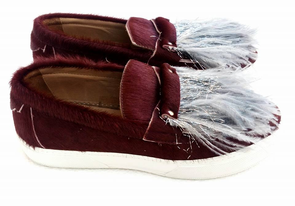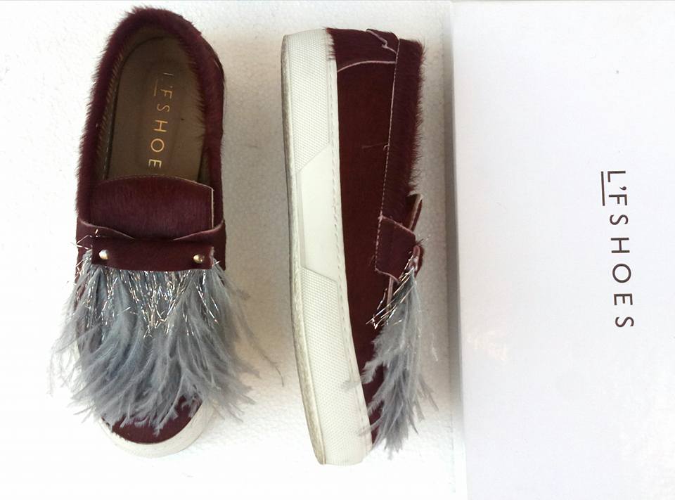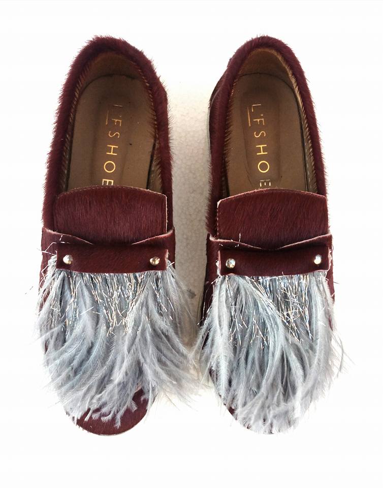 L’F Shoes Sunday bordeaux cavallino e piume