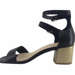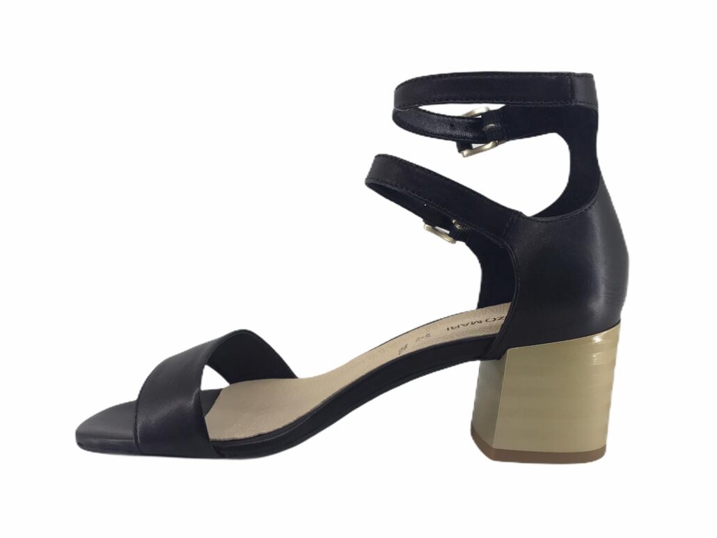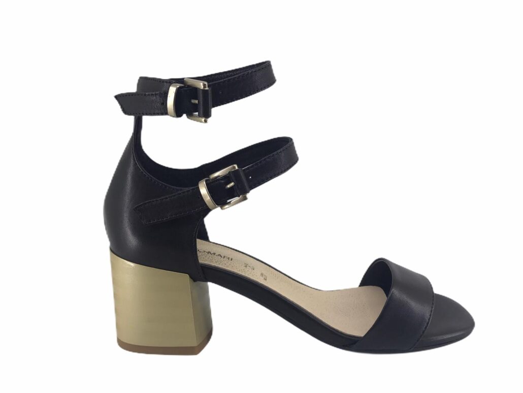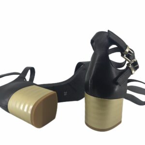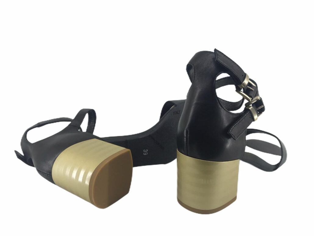 scarpa realizzata in pelle,tacco comodo 50mm ,dorato,punta tonda,fasce in pelle