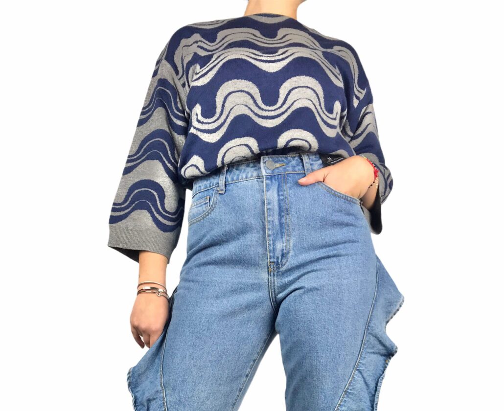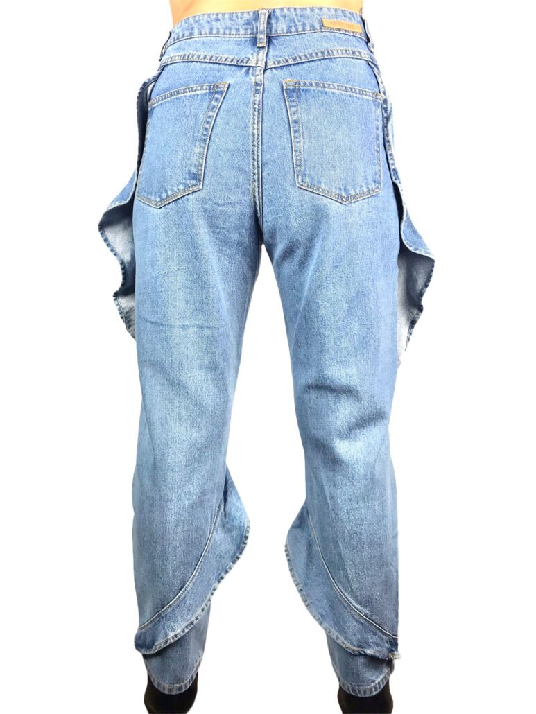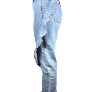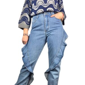 jeans con volant laterali , cotone 100% , leggermente piu stretto alla caviglia per donare l effetto caramella