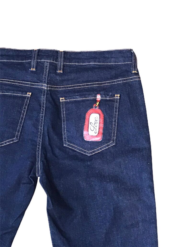 jeans donna logato,stampacinta rossa egialla,logo posteriore love moschino,cotone denim 100%