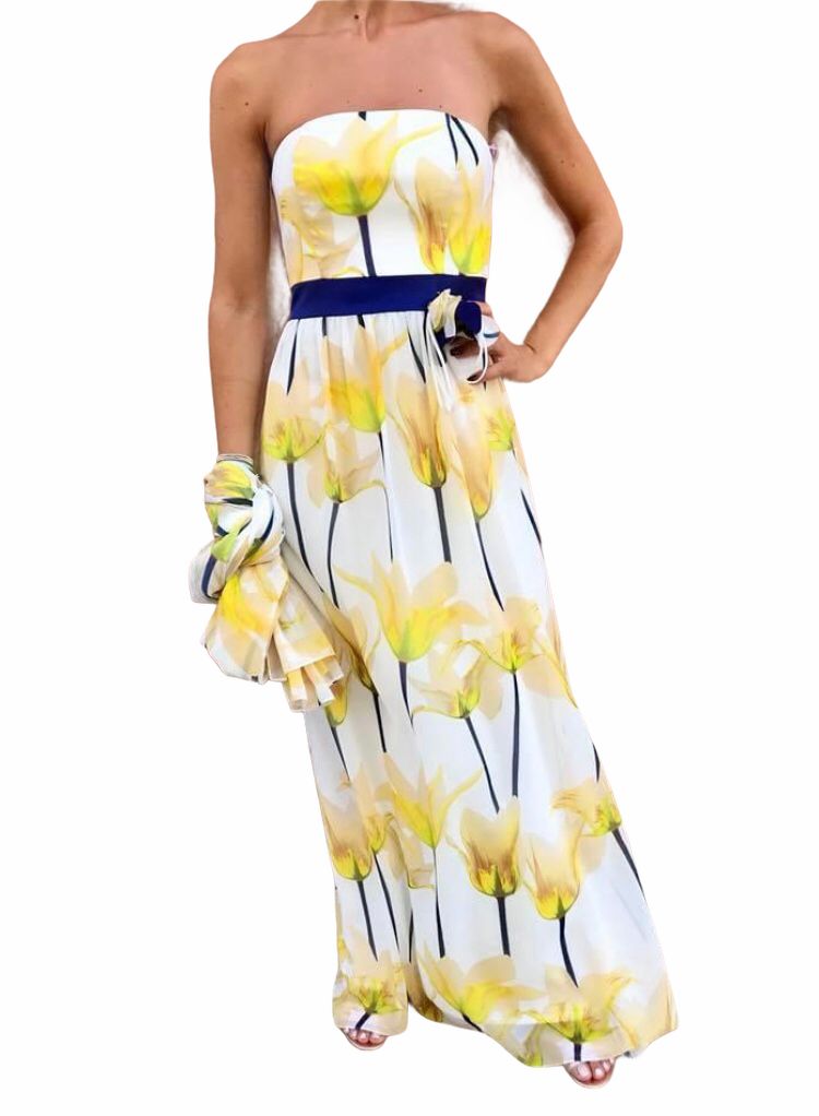 MISS MAX abito lungo c / fiore giallo