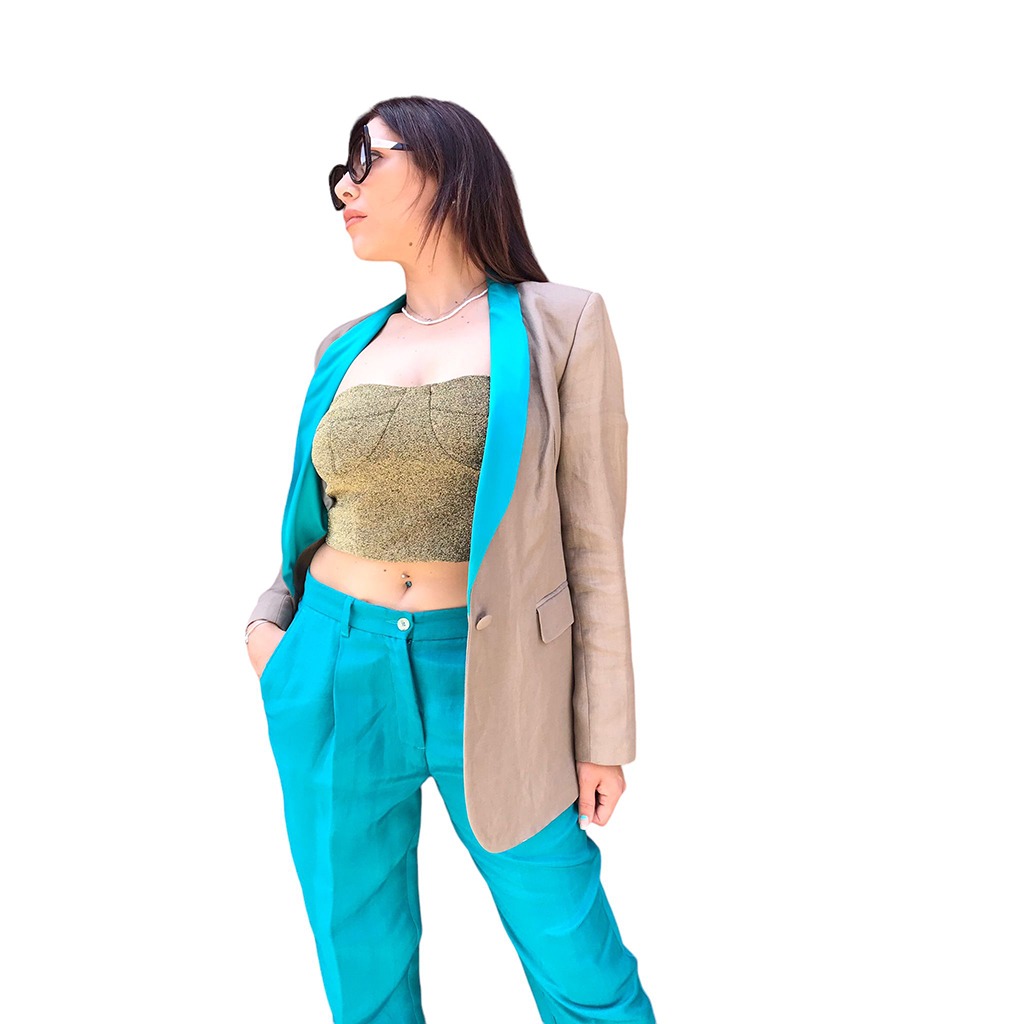MOMONI’ tailleur juta e acquamarina