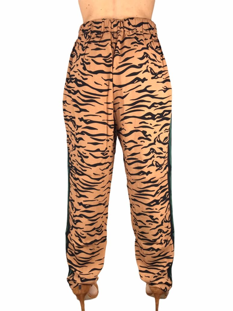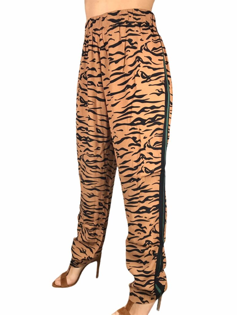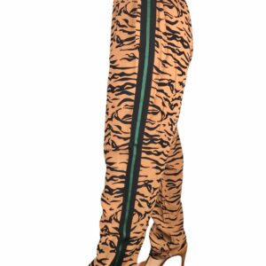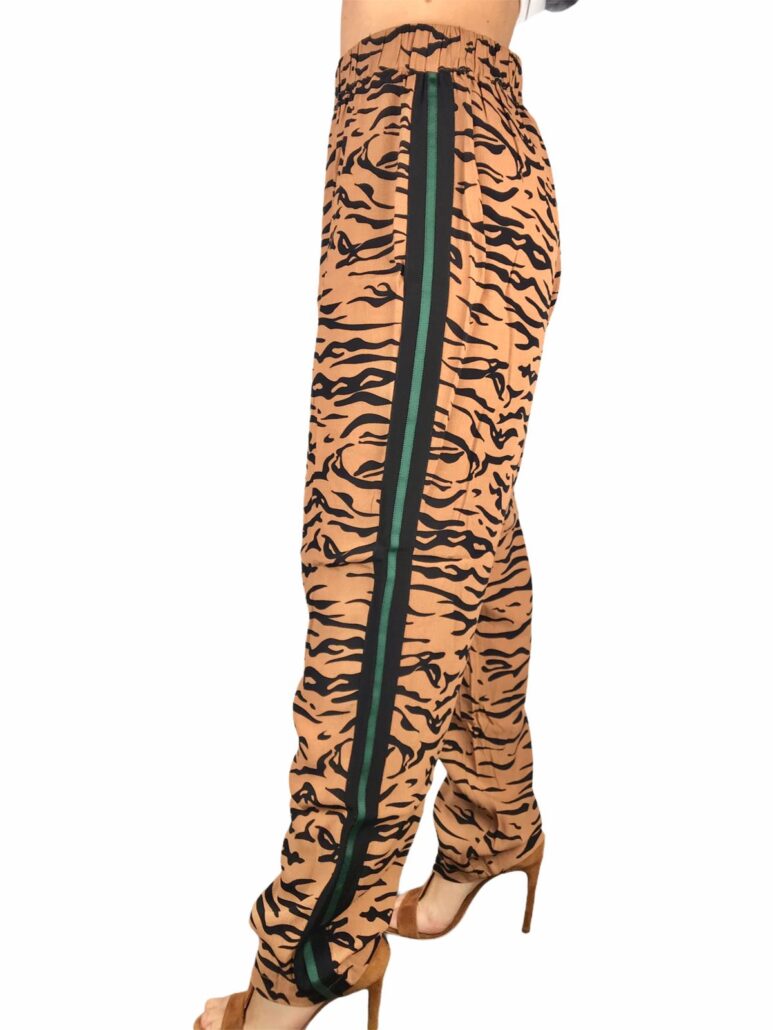 morbidissimo pantalone donna realizzato in poliestere, fantasia animailer ,bande laterali