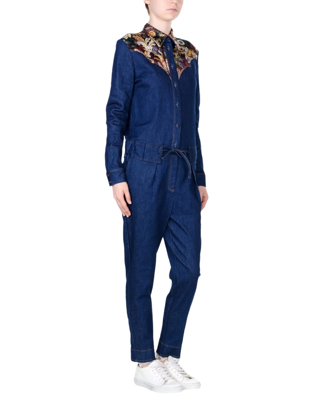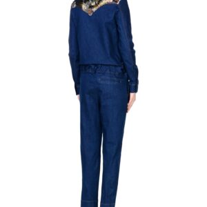 jacquard, denim, senza applicazioni, tinta unita, collo classico, maniche lunghe, tasca a soffietto, multitasche, bottoni, chiusura sul fronte, fondo sfrangiato, vita con coulisse, elasticizzato