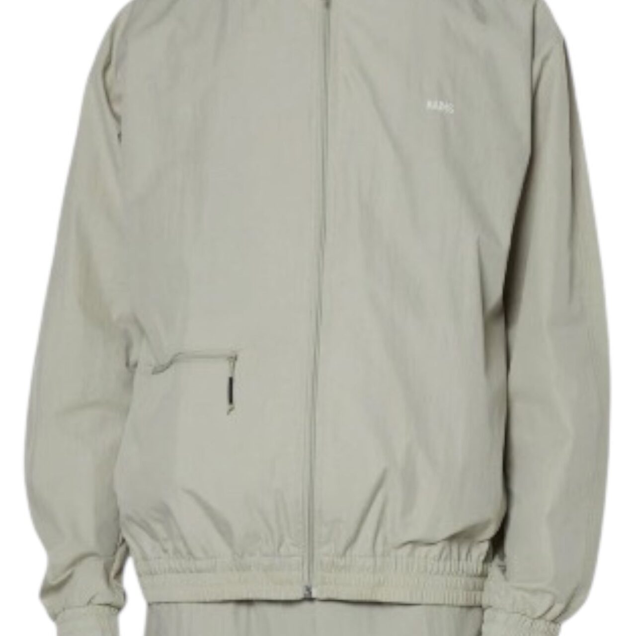 Il modello leggero è dotato di chiusura con zip, orlo e polsini elasticizzati, collo alto e tasche laterali nascoste. I dettagli distintivi includono il logo Rains a contrasto e la tasca con logo.