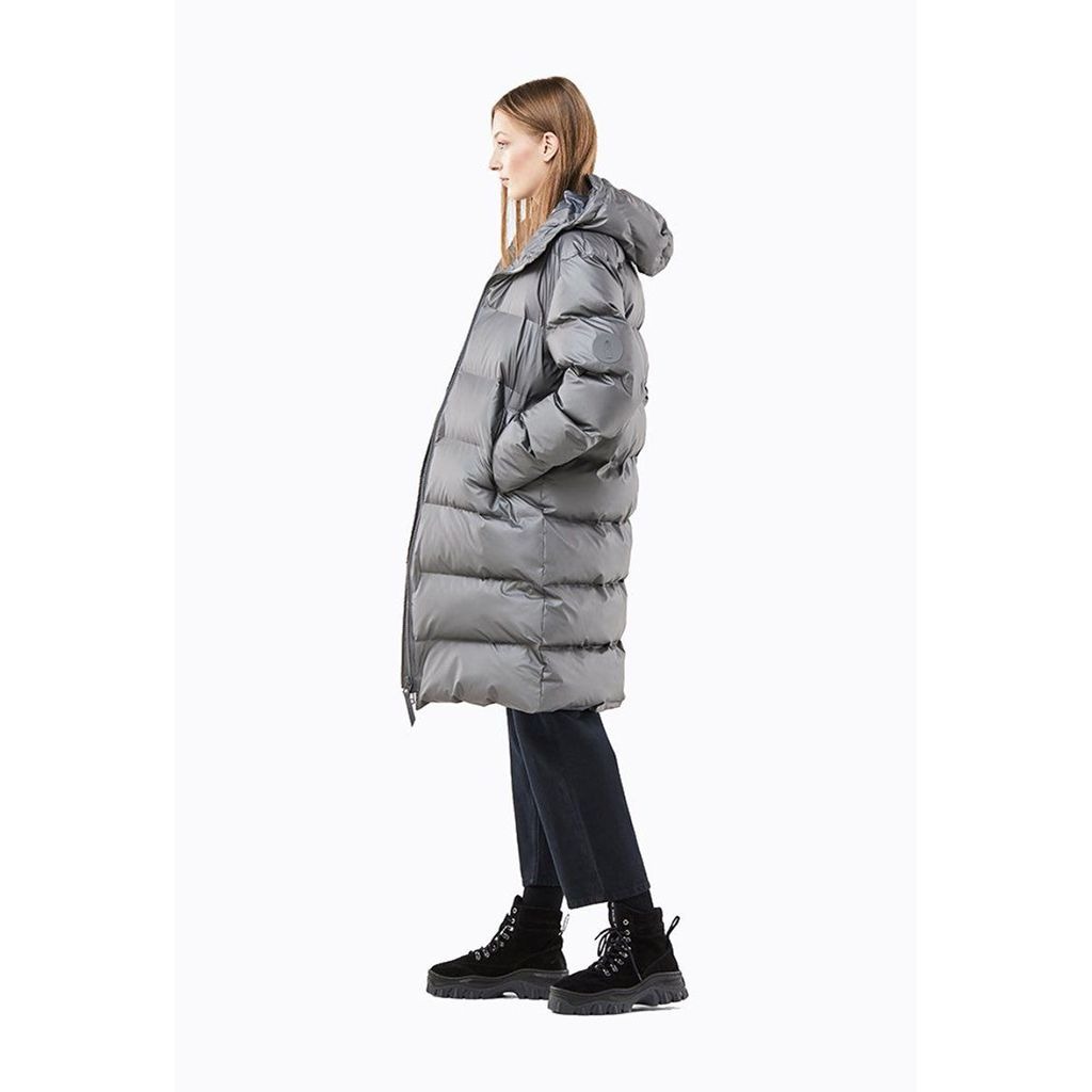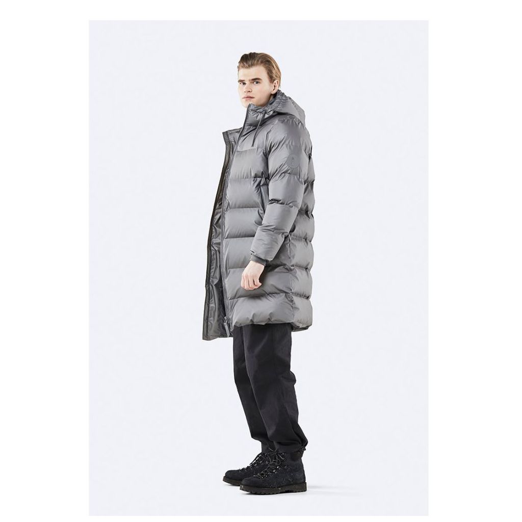 RAINS piumino unisex lungo grigio metallico