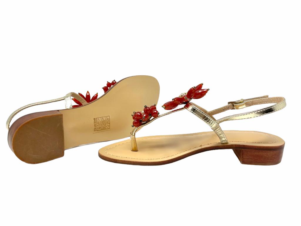 sandalo gioiello donna , realizzato con fasce in vera pelle , suola in cuoio , plantare in cuoio con micro imbottitura per renderlo morbido e confortevole , sotto tacco in gomma antiscivolo , applicazioni in resina e pietre strass ,cinturino regolabile alla caviglia , tacco 2,5 cm