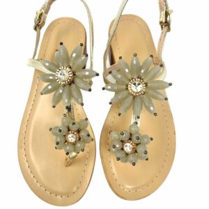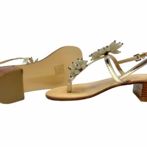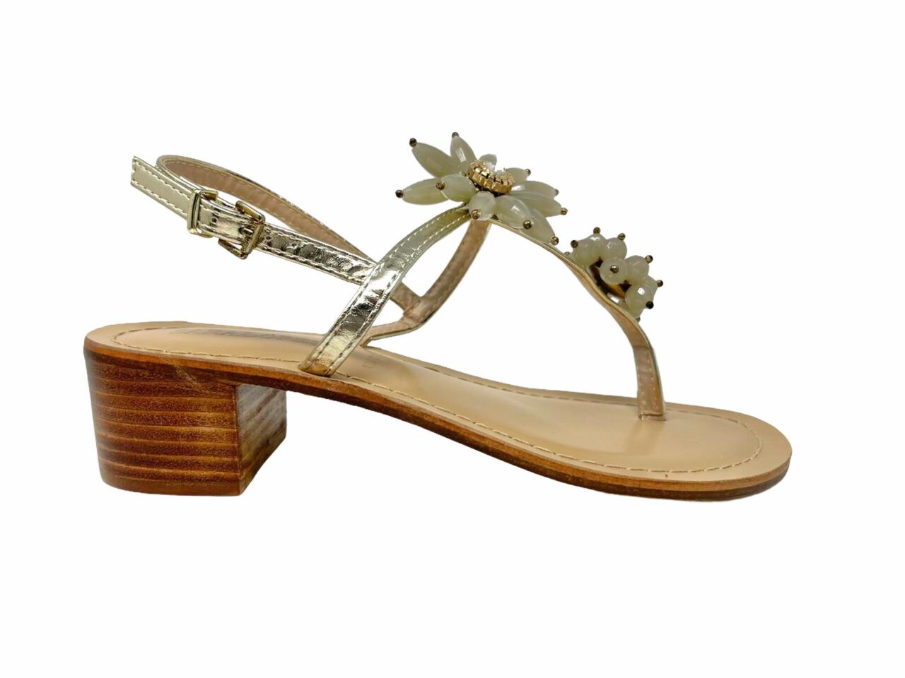 sandalo gioiello donna , realizzato con fasce in vera pelle , suola in cuoio , plantare in cuoio con micro imbottitura per renderlo morbido e confortevole , sotto tacco in gomma antiscivolo , applicazioni in resina e pietre strass ,cinturino regolabile alla caviglia , tacco 2,5 cm