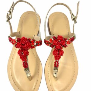 sandalo gioiello donna , realizzato con fasce in vera pelle , suola in cuoio , plantare in cuoio con micro imbottitura per renderlo morbido e confortevole , sotto tacco in gomma antiscivolo , applicazioni in resina e pietre strass ,cinturino regolabile alla caviglia , tacco 2,5 cm