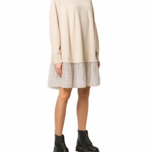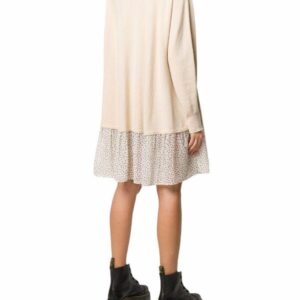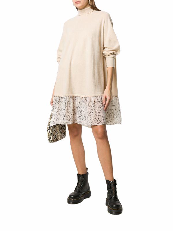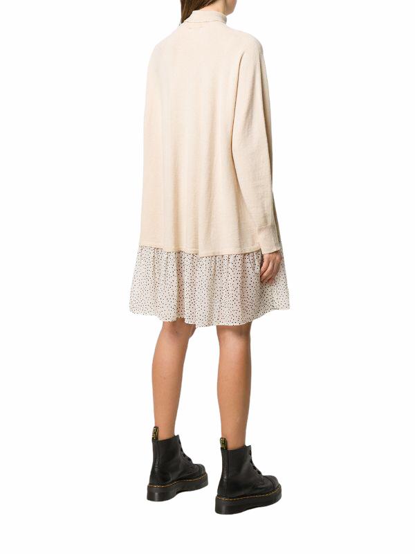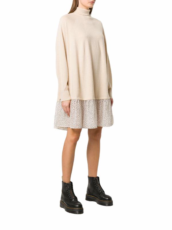 Abito ampio di Semicouture in maglia misto lana-cashmere con il collo a lupetto e l’inserto al fondo in georgette stampa a pois. Modello SERENITY