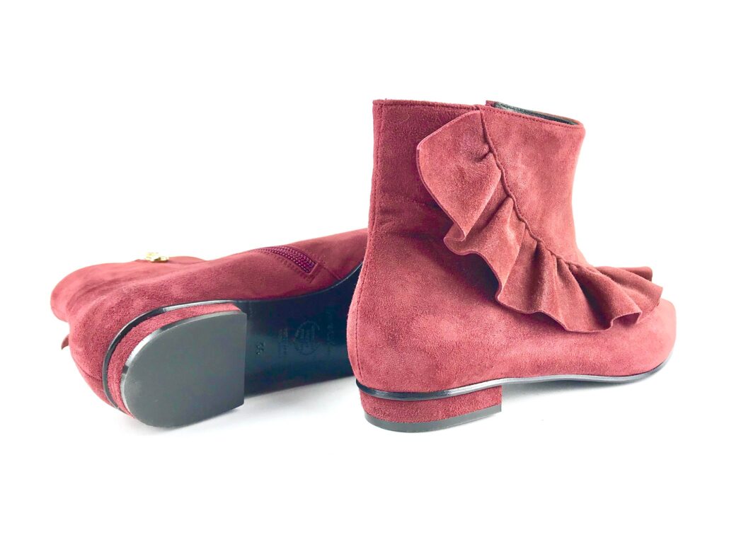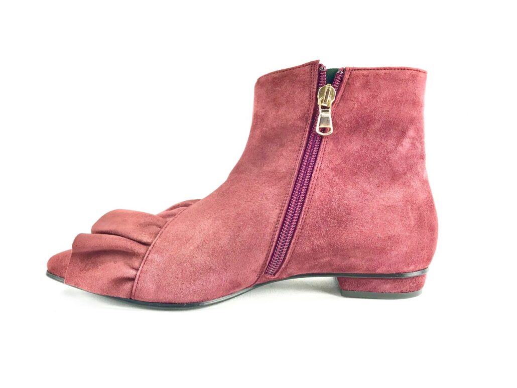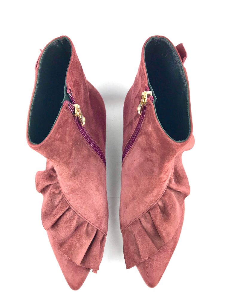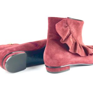 scarpa realizzata in pelle scamosciata ,cerniera laterale,rouge in tinta,suola in cuoio
